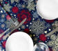 Дак (DUCK) Желтые и красные снежинки на синем фоне