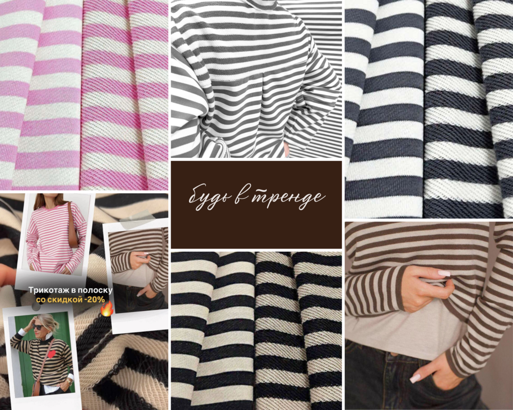 Дорогие наши клиенты, предлагаем собрать образ из наших тканей, который будет всегда у вас под рукой и выступать в качестве палочки-выручалочки в дни, когда нечего надеть или нужно собраться за 5 минут! Главным героем вашего образа рекомендуем сделать трикотаж в полоску. В этой статье рассмотрим невероятно приятный и плотный полосатый футер 3-х нитка петля и нежнейшую кулирку.